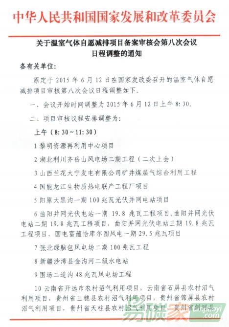 關于溫室氣體自愿減排項目備案審核會第八次會議日程調(diào)整的通知