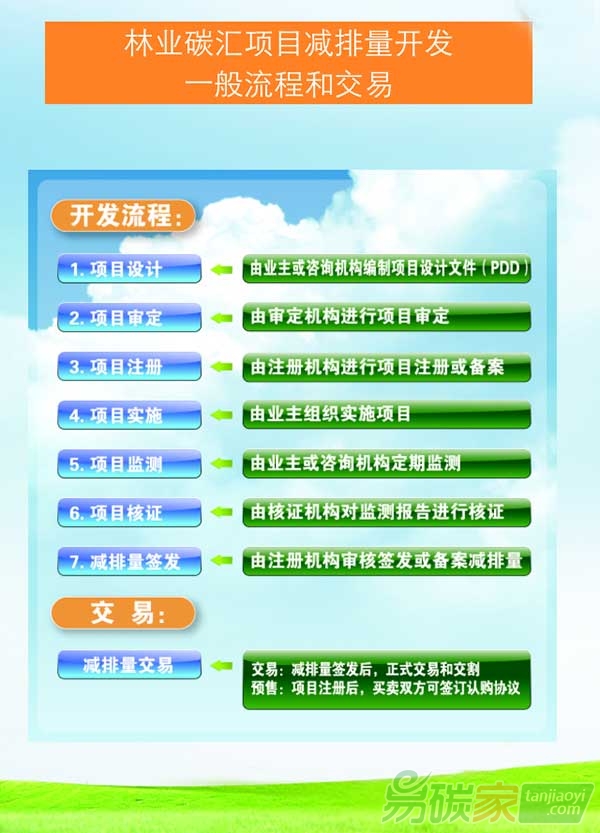 根據(jù)我國清潔發(fā)展機制項目開發(fā)的通行做法以及國家發(fā)改委頒布的《溫室氣體自愿減排交易管理暫行辦法》,開發(fā)碳匯項目流程包括項目篩選和評估、設(shè)計與描述、審定、備案、實施與監(jiān)測、核證、備案