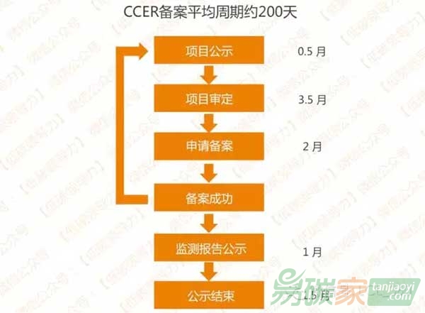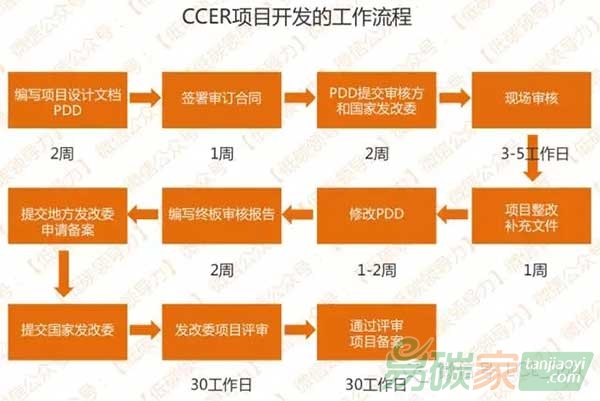 第三方審核機(jī)構(gòu)和發(fā)改委的各種審查,符合項目方法學(xué)要求和額外性論證后,才能最終完成備案,一個完整的CCER項目的開發(fā)流程如下: