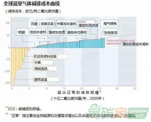 據(jù)了解,早在2007年,麥肯錫公司做了兩項(xiàng)關(guān)于資源生產(chǎn)力框架和溫室氣體成本曲線(如圖所示)的開(kāi)創(chuàng)性研究,并在此基礎(chǔ)上作出了一些預(yù)測(cè)?,F(xiàn)在反觀這些預(yù)測(cè),大部分預(yù)測(cè)的比較準(zhǔn)確,也有一些出現(xiàn)了偏差,麥肯錫據(jù)此觀察出了能源領(lǐng)域的下一步發(fā)展趨勢(shì)。