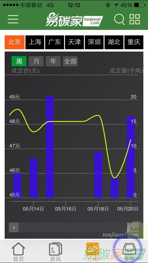易碳家APP于2015年5月7日正式上線,其中APP中的碳金庫是中國碳排放權(quán)交易市場最大的專業(yè)工具金庫,為廣大從業(yè)者提供貼身工具,提高工作效率。