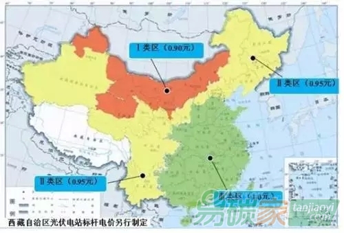 圖1 中國光伏項目三類上網(wǎng)電價區(qū)域分布圖
