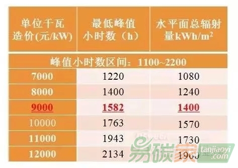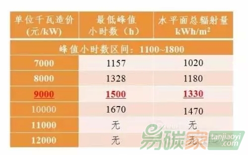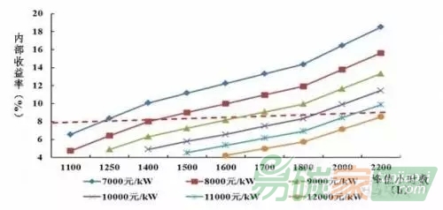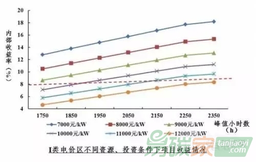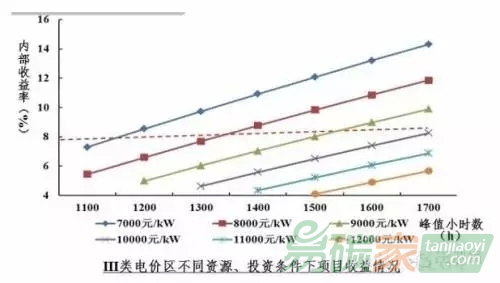 相同的項目內(nèi)部收益率:各電價區(qū)的峰值小時數(shù)相差大約100~120h;