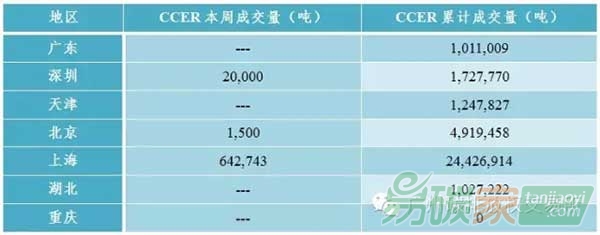 ccer成交2萬(wàn)噸。湖北碳市場(chǎng)上周共成交配額4.94萬(wàn)噸,成交均價(jià)為22.91元/噸,與前一周持平。天津碳市場(chǎng)上周配額成交量為620噸,成交均價(jià)為22.85元/噸,與前一周持平。