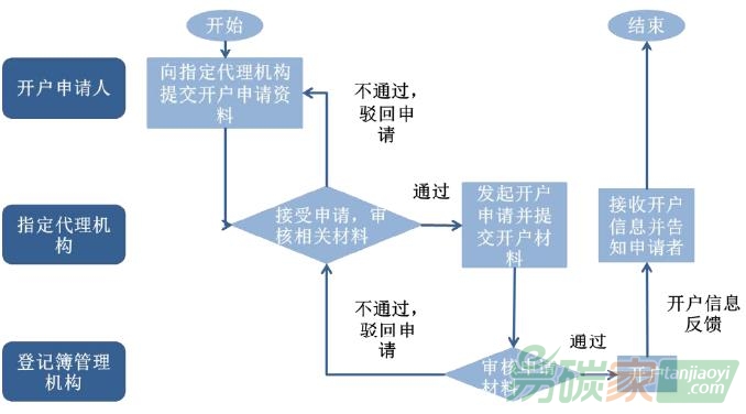 ccer,首先需要在國家注冊登記系統(tǒng)上進(jìn)行開戶。國家注冊登記系統(tǒng)的開戶流程涉及到3個(gè)利益相關(guān)方,包括開戶申請(qǐng)人、指定代理機(jī)構(gòu)和登記簿管理機(jī)構(gòu)。代理機(jī)構(gòu)即國家發(fā)改委氣候司備案的七家溫室氣體自愿減排交易機(jī)構(gòu),即7個(gè)試點(diǎn)的交易所。自愿減排交易相關(guān)參與方可在任意一家指定代理機(jī)構(gòu)提交開戶申請(qǐng)材料。代理機(jī)構(gòu)受理開戶對(duì)象包括CCER項(xiàng)目業(yè)主、納入各