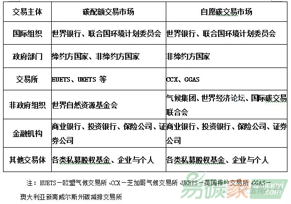 碳基金、私人企業(yè)與交易所,也包括世界銀行等國際組織、世界自然基金會等非政府組織以及私募股權基金等其他交易主體。