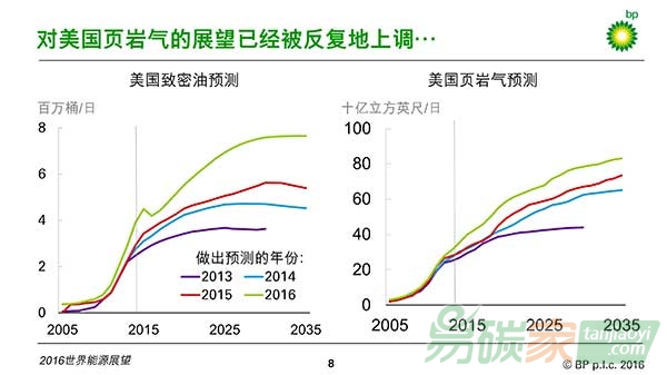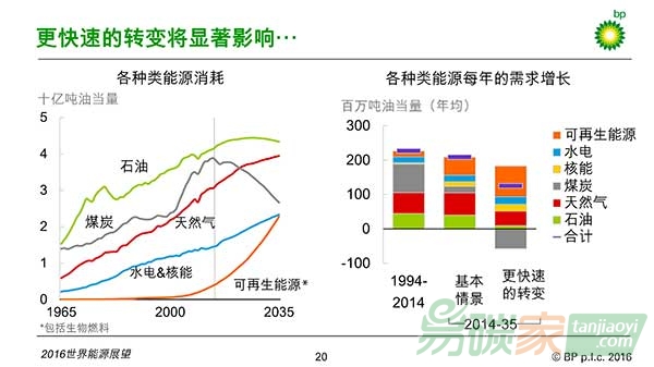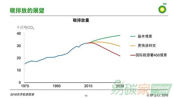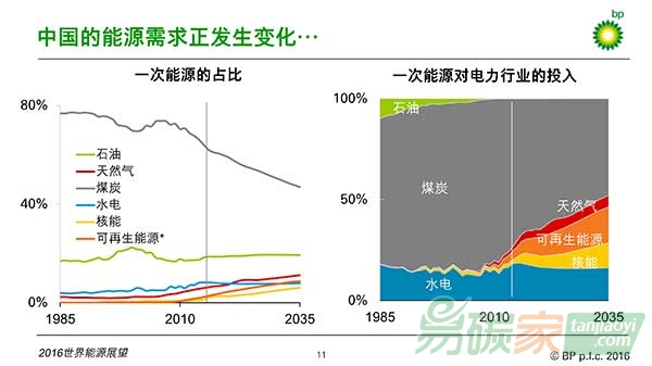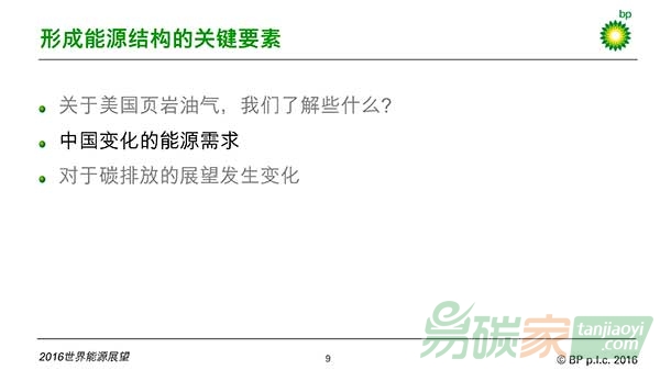 這是2016版《展望》的基本判斷。但這次的報告與之前的的預(yù)測有了些許不同。比如,2035年的能源需求預(yù)測被下調(diào)了1%,也就是1.5億噸油當(dāng)量。