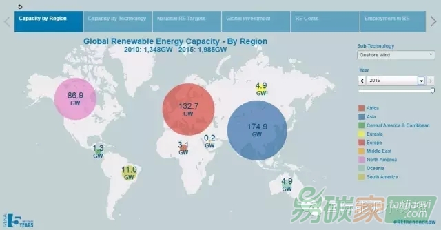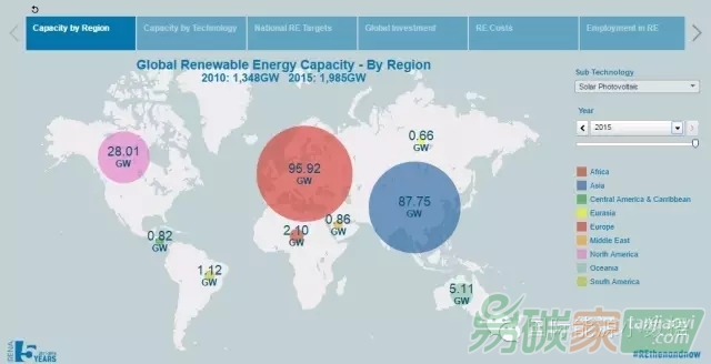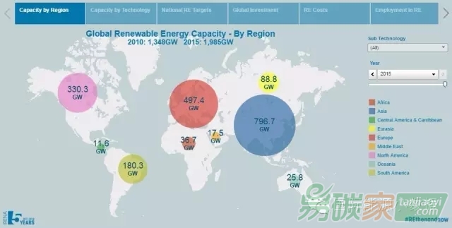 根據(jù)國際可再生能源署統(tǒng)計(jì),至2015年底全球可再生能源發(fā)電總裝機(jī)達(dá)到1985GW,相比2010年(1348GW)增長(zhǎng)了47%。