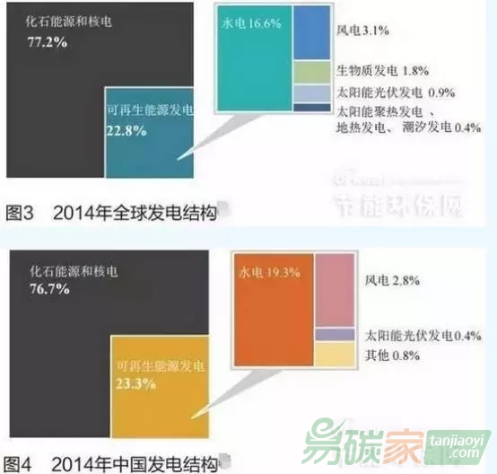 全球發(fā)電裝機(jī)容量中有27.7%來自可再生能源。2014年全球可再生能源新增發(fā)電裝機(jī)容量占全球新增容量的59%,首次超過煤電和天然氣發(fā)電新增容量之和。