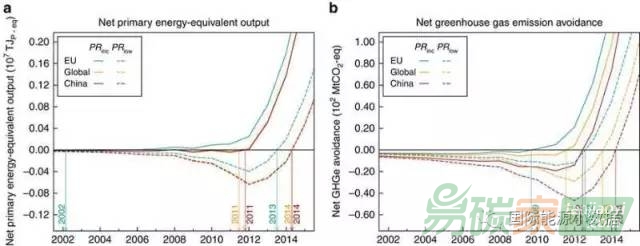 碳排放。但是光伏組件生產(chǎn)過程需要消耗電能,所以光伏也是有碳排放的。荷蘭Utrecht University的學(xué)者Wilfried van Sark博士計(jì)算了1975-2015年之間全球生產(chǎn)光伏組件所消耗的能源以及相應(yīng)的碳排放,報(bào)告發(fā)表在Nature Communications雜志上。當(dāng)然,光伏組件生產(chǎn)過程的碳排放量取決于光伏的生產(chǎn)時(shí)間和地點(diǎn)。由于中國(guó)的發(fā)電能源結(jié)構(gòu)以煤為主,所以在中國(guó)生產(chǎn)的光伏組件的碳排放要高出歐洲生產(chǎn)的光伏組件一倍。但隨著技術(shù)進(jìn)步和能源結(jié)構(gòu)的改變,光伏組件生產(chǎn)的碳排放不斷下降。