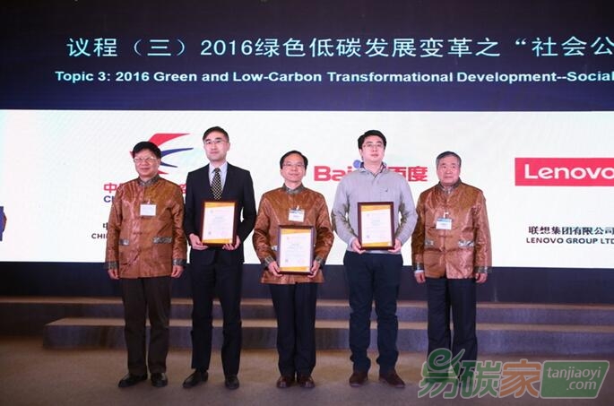 航空股份有限公司、百度在線網(wǎng)絡(luò)技術(shù)(北京)有限公司、聯(lián)想集團(tuán)有限公司獲得2016年度國(guó)際碳金獎(jiǎng)“WEC社會(huì)公民”獎(jiǎng)的榮譽(yù)單位。
