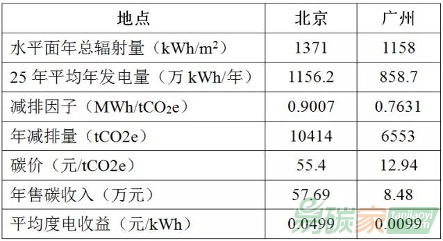 鑒于各地碳價差異大,要算光伏項目帶來的收益,首先要選擇合適的地點(diǎn)。本文以10MWp的項目為例,采用價格最高的北京和價格最低的廣東來進(jìn)行計算。