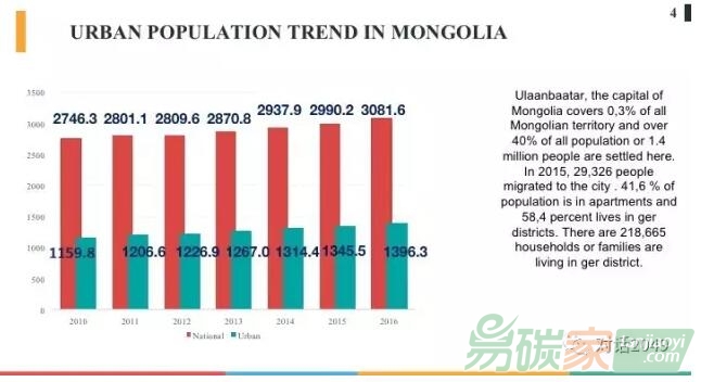 非常高興有機(jī)會(huì)代表烏蘭巴托環(huán)保局給大家介紹一下蒙古國(guó)以及烏蘭巴托的低碳發(fā)展以及相關(guān)措施落實(shí)的情況。中國(guó)城市化非常迅速,蒙古國(guó)以及首都烏蘭巴托也一樣。2007年世界城市人口史無(wú)前例的超過(guò)了農(nóng)村人口,到2050年將只有三分之一的人口居住在農(nóng)村,其余的人都生活在城市。