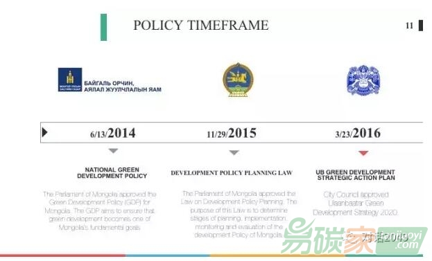 政策上經(jīng)歷了不斷變化的過(guò)程,因?yàn)槭艿絿?guó)際、國(guó)內(nèi)一些調(diào)整的影響。這個(gè)行動(dòng)計(jì)劃出臺(tái)的大背景是,2014年蒙古國(guó)議會(huì)批準(zhǔn)了《國(guó)家綠色發(fā)展政策》,由環(huán)保部和旅游部牽頭頒發(fā);2015年蒙古國(guó)議會(huì)通過(guò)了一項(xiàng)關(guān)于發(fā)展政策規(guī)劃的法律,規(guī)定了國(guó)家政策的制定、實(shí)施和監(jiān)測(cè)評(píng)估的流程;2016年,與烏蘭巴托市政局批準(zhǔn)了《烏蘭巴托綠色發(fā)展戰(zhàn)略2020》,對(duì)環(huán)境方面的七個(gè)主要目標(biāo)制定了到2020年的行動(dòng)方案。