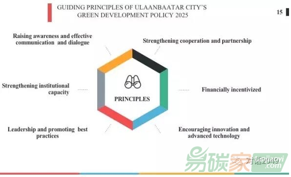 目前,烏蘭巴托在上圖所示的框架下來(lái)推進(jìn)實(shí)現(xiàn)2025綠色發(fā)展政策,包括:增強(qiáng)與不同利益相關(guān)方的合作;在金融和財(cái)政上給予足夠的鼓勵(lì)和刺激政策;鼓勵(lì)創(chuàng)新和先進(jìn)技術(shù)的發(fā)展;展現(xiàn)領(lǐng)導(dǎo)力,促進(jìn)最佳實(shí)踐;加強(qiáng)機(jī)構(gòu)的能力;提升認(rèn)知度,進(jìn)行有效的溝通和對(duì)話。