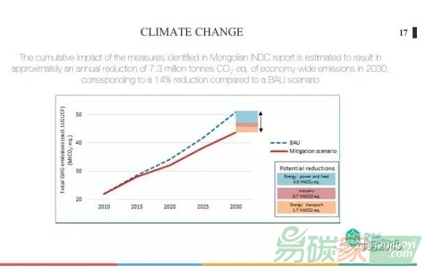 具體到氣候變化規(guī)劃上,上圖顯示的是預(yù)期實(shí)現(xiàn)蒙古國(guó)的國(guó)家自主貢獻(xiàn)目標(biāo),2030年需要