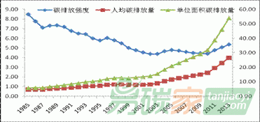新疆碳排放量、排放強度、人均排放量和單位面積排放量,分析新疆碳排放與能源消費和經(jīng)濟增長間的相關(guān)性。分析新疆低碳經(jīng)濟發(fā)展面臨