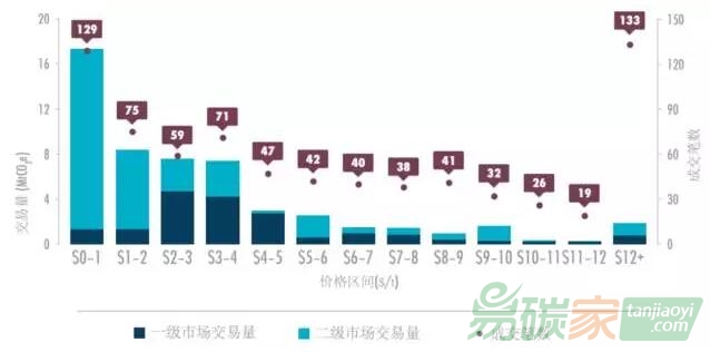 2016年自愿減排一級市場交易量為1850萬噸CO2e,占主導(dǎo)的是社區(qū)能源效率和清潔烹飪爐項目;二級市場交易量為4480萬噸CO2e,以REDD+、風(fēng)能和垃圾填埋場甲烷項目為主。