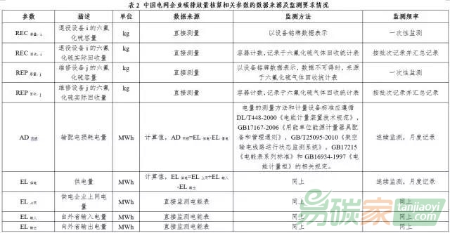 電網(wǎng)企業(yè)活動數(shù)據(jù)包括在輸配電過程中電力的損失量以及六氟化硫設(shè)備的日常使用或維護過程中的泄漏量。電網(wǎng)行業(yè)網(wǎng)損的排放因子每年由國家主管部門公布,六氟化硫未采用排放因子法,需要用六氟化硫的排放量乘以溫室氣體全球變暖潛力值來計算(六氟化硫 (SF6)全球變暖潛力值為23900)。碳排放量核算相關(guān)參數(shù)的數(shù)據(jù)來源及監(jiān)測要求參見表2。
