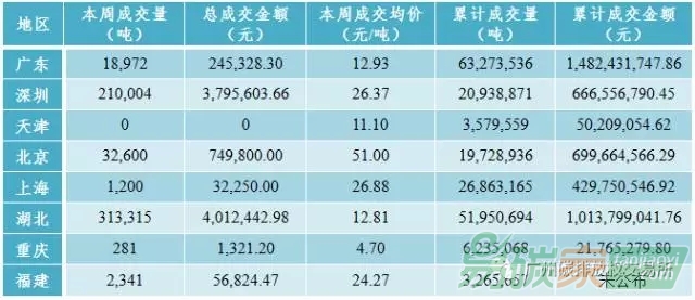 市場(chǎng)活躍度大幅上升,共成交配額57.87萬噸,較前一周上漲160.98%,總成交金額為889.36萬元,較前一周上周上漲150.88%。廣東