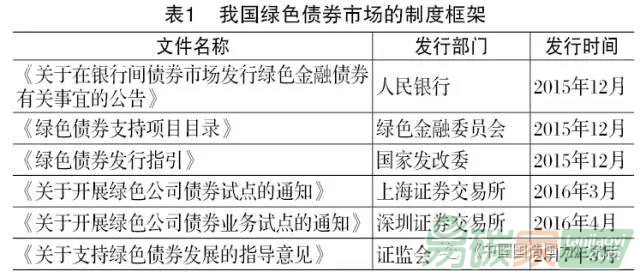 2014年5月,中廣核風(fēng)電在銀行間市場(chǎng)發(fā)行我國(guó)第一只“碳債券”,從實(shí)踐探索的角度邁出了發(fā)展綠色債券市場(chǎng)的第一步。2016年1月27日和28日,浦發(fā)銀行和興業(yè)銀行先后推出兩只綠色金融債券,標(biāo)志著我國(guó)綠色債券市場(chǎng)的正式啟動(dòng)。隨后人民銀行、綠色金融委員會(huì)、國(guó)家發(fā)改委和證監(jiān)會(huì)等部門(mén)陸續(xù)發(fā)布文件,進(jìn)一步明確了我國(guó)綠色債券市場(chǎng)的政策框架和實(shí)施細(xì)則(見(jiàn)表1)。