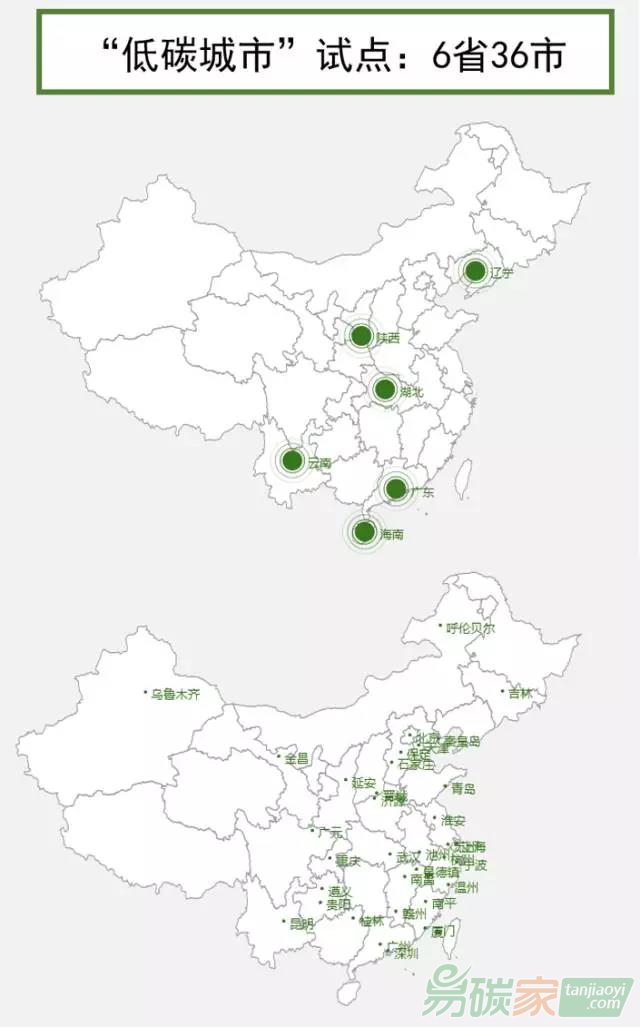 碳排放以達到應對氣候變化的目的。據統(tǒng)計,中國自2010年以來開始啟動低碳城市建設,先后共批準了6省36市作為低碳省去和低碳城市試點。試點地區(qū)的人口占全國總人口的40%,GDP占全國總量的60%左右。