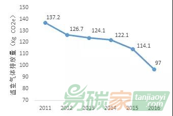 碳排放大約是79千克,這是個(gè)什么概念?下面是蘋果單臺(tái)產(chǎn)品的平均碳排放,可以看到連續(xù)6年,蘋果單臺(tái)產(chǎn)品的碳排放量在持續(xù)顯著地下降,從2011年的137.2千克下降至2016年的97千克。即將開(kāi)售的最新款iPhone X,只有79千克的排放,已經(jīng)遠(yuǎn)遠(yuǎn)低于2016年蘋果公司的平均產(chǎn)品碳排放,不得不說(shuō)蘋果公司在控制溫室氣體方面投入了巨大的努力。
