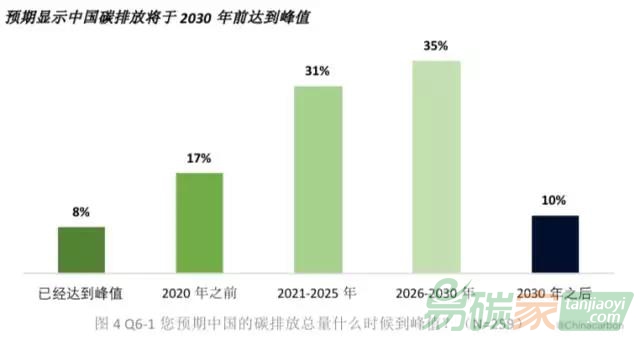 全國(guó)碳市場(chǎng)有助于中國(guó)碳排放早日達(dá)峰,引領(lǐng)全球應(yīng)對(duì)氣候變化行動(dòng)。報(bào)告顯示,90%的受訪者預(yù)期中國(guó)碳排放總量將在2030年或更早達(dá)到峰值,55%的受訪者認(rèn)為峰值將在2025年或更早到來(lái)。到2025年,中國(guó)減少碳排放的