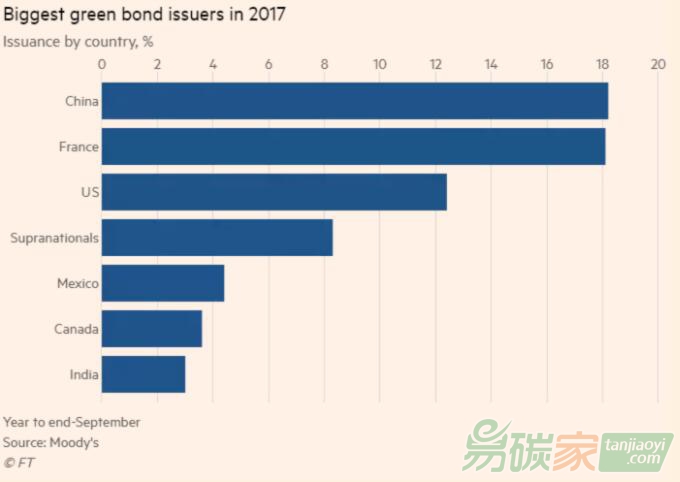 中國的綠色債券發(fā)行規(guī)模達到創(chuàng)紀錄高點,今年第三季度,中國成為全球最大綠色新債發(fā)行國,并讓中國與法國并列成為今年迄今最大綠色債券發(fā)行國。