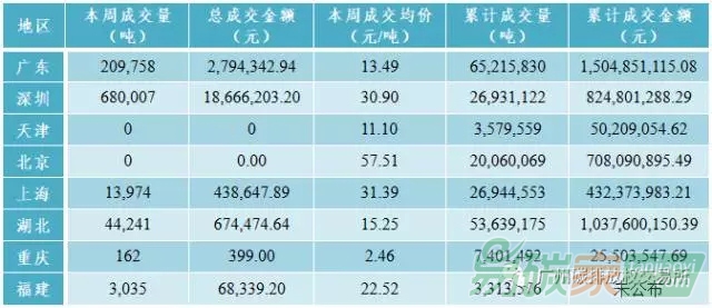 市場活躍度有所下降,共成交配額95.12萬噸,較前一周下跌14.45%,總成交金額為2264.24萬元,較前一周下跌31.05%。廣東