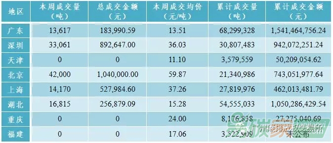 碳市場(chǎng)僅有3個(gè)交易日,共成交配額11.97萬噸,較前一周下跌83.80%,總成交金額為290.15萬元,較前一周下跌81.35%。廣東碳市場(chǎng)上周成交配額1.36萬噸,成交均價(jià)為13.51元/噸,較前一周下跌8.72%。