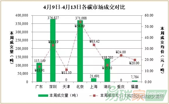 福建碳市場(chǎng)上周共成交配額7784噸,成交均價(jià)為20.00元/噸,較前一周上漲17.23%。重慶、天津、