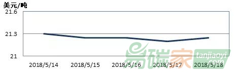 2018年5月14日至2018年5月20日,新西蘭碳單位(New Zealand Unit, NZU)的現(xiàn)貨價格在21.2-21.3美元/噸之間。
