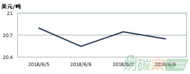 2018年6月4日至2018年6月10日,新西蘭碳單位(New Zealand Unit, NZU)的現(xiàn)貨價格在20.55-20.8美元/噸之間。
