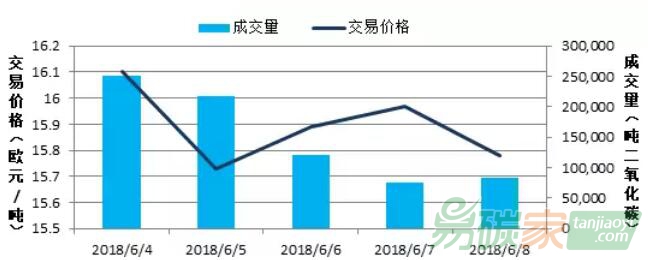 碳市場日交易均價在15.73-16.1歐元/噸之間波動。