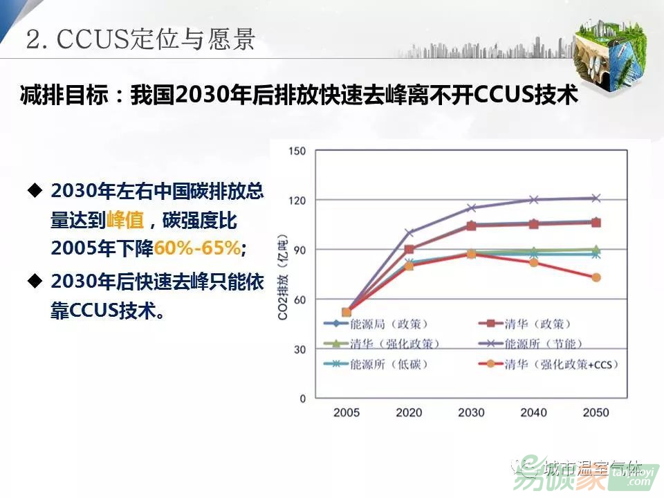 在這些定位的基礎(chǔ)上,我們的研究也對(duì)CCUS在中國發(fā)揮的作用進(jìn)行了分析。圖中是國內(nèi)相關(guān)研究機(jī)構(gòu)的預(yù)測,如果想實(shí)現(xiàn)2030年以后去峰和量化的減排,CCUS是必不可少的技術(shù)方向。