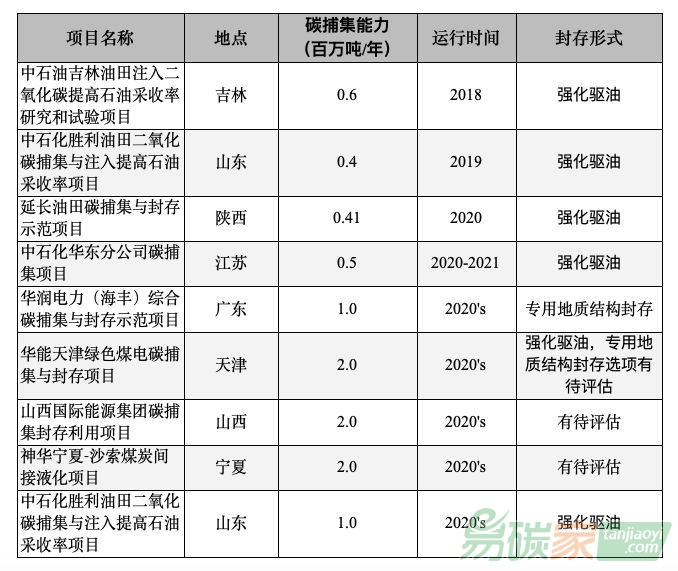 中國(guó)境內(nèi)的大型CCS示范項(xiàng)目(更新時(shí)間:2018年8月)