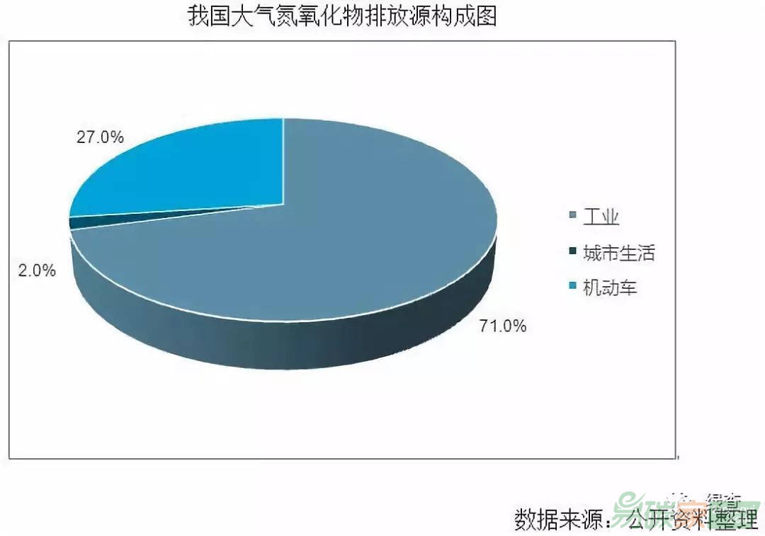 PM2.5和PM10其實就是直徑不同的粉塵,另外,臭氧是氮氧化物與揮發(fā)性有機(jī)物(VOCs)在空氣中經(jīng)過復(fù)雜的化學(xué)反應(yīng)形成的二次污染物。因此為了控制我國大氣污染,需要追蹤粉塵、氮氧化物和VOCs的排放源情況。根據(jù)《我國大氣污染來源分析》一文中的統(tǒng)計,我國粉塵和氮氧化物的主要排放源都是工業(yè)生產(chǎn),分別占到了83%和71%。而機(jī)動車排放占大氣氮氧化物排放的27%,是第二污染源。