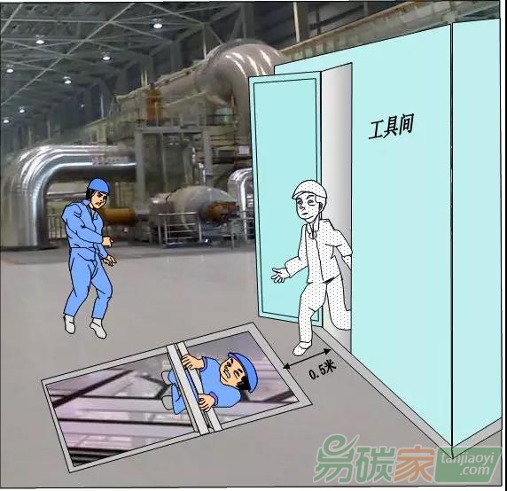 在某年12月26日上午,某廠檢修人員將發(fā)電機(jī)平臺(tái)附近的起吊孔(12.6米)打開(kāi)后未設(shè)置臨時(shí)圍欄,設(shè)一人看護(hù)。距起吊孔約0.5米處臨時(shí)放置一臨時(shí)鐵棚工作間,從鐵棚內(nèi)出來(lái)一位工作人員,踏入起吊孔,手臂抓住起吊孔中間的工字鋼梁上,懸在空中,撿回一條命。