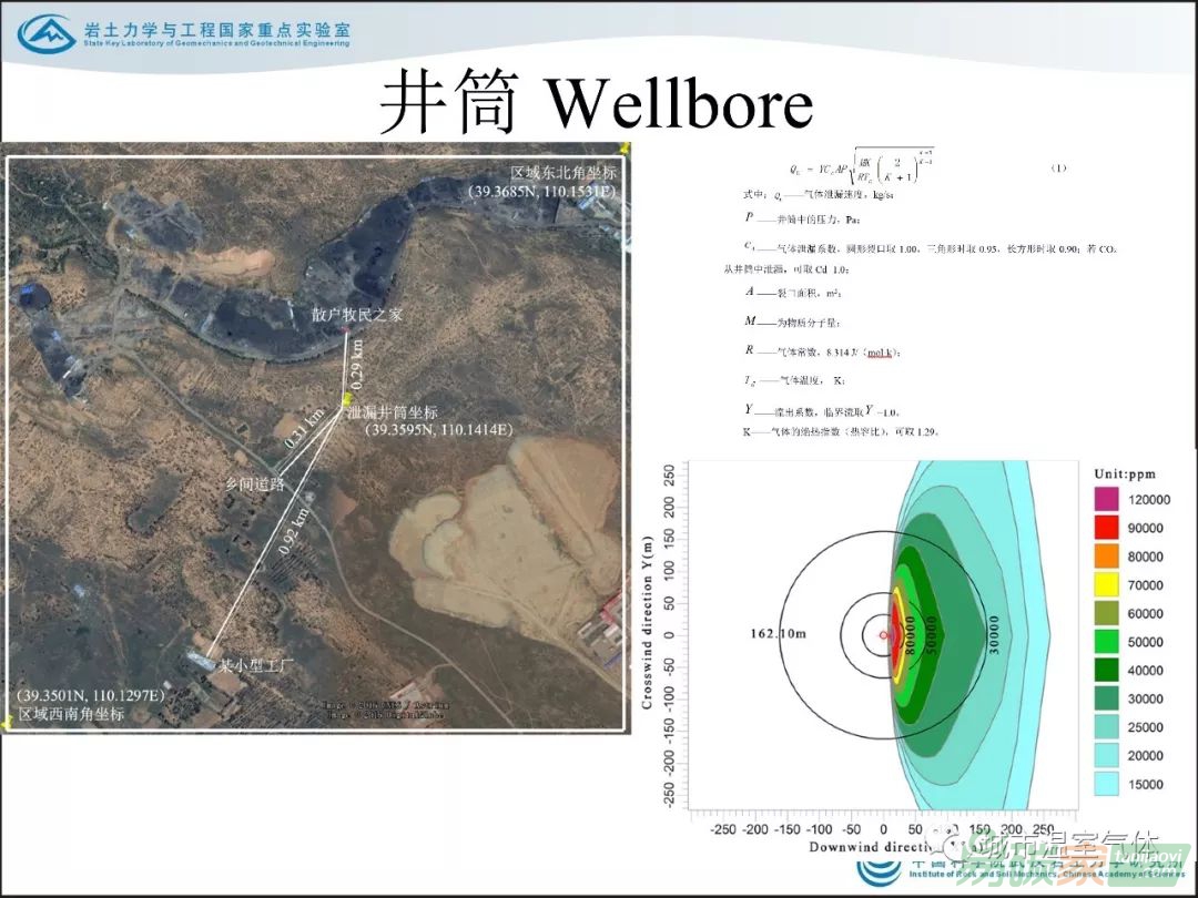 這是神華CCS項(xiàng)目位置及周圍牧民、工廠的分布。我們的計(jì)算表明,井噴發(fā)生時(shí),30000ppm濃度的二氧化碳擴(kuò)散距離尚不至于威脅到周圍牧民等。