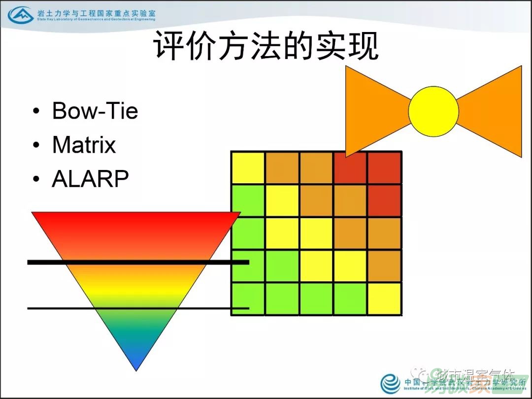 這些方法的實(shí)現(xiàn),尤其是在定量的時(shí)候,無(wú)非就是這么幾種手段,例如:Bow-Tie,Matrix,ALARP。這需要大量的數(shù)據(jù)支持,尤其是有一個(gè)比較強(qiáng)的數(shù)據(jù)庫(kù)支持,非常重要,否則光做出這個(gè)東西沒(méi)有用。
