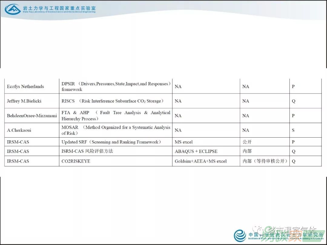 風(fēng)險(xiǎn)評(píng)價(jià)方法,應(yīng)用在CCUS的歷史雖然不悠久,但是需求出來(lái)以后,看到四年一度的GHGT大會(huì),大量的評(píng)價(jià)方法接踵而來(lái),定性、定量、半定量的都有。