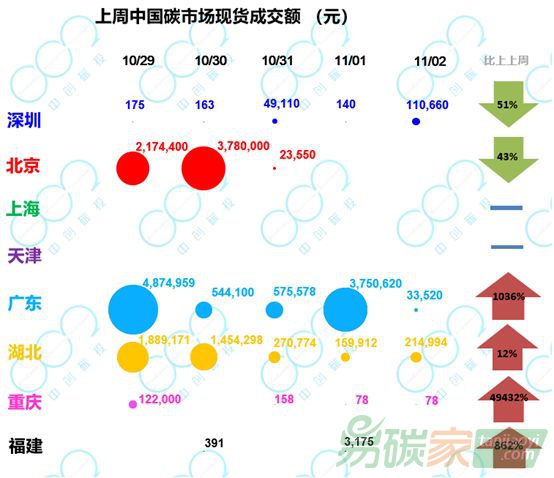 11月5日~11月9日,上海和深圳市場CCER分別成交1萬噸,北京市場CCER成交20萬噸,