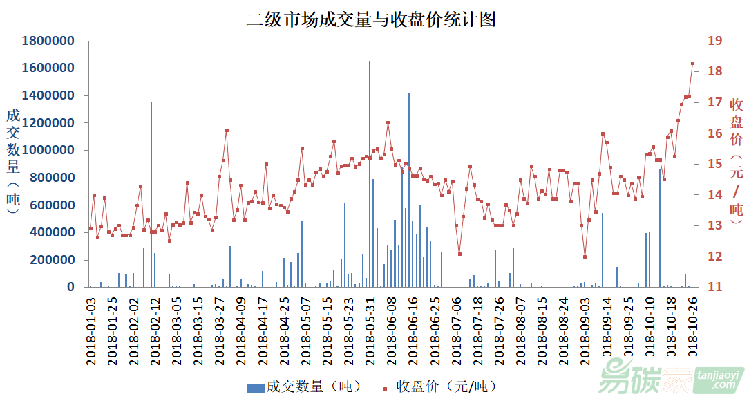 (廣東碳配額價格呈現(xiàn)上升態(tài)勢)2018年1月至10月