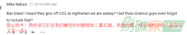 還有網(wǎng)友稱,“禁止樹木,我聽(tīng)說(shuō)它們?cè)谖覀兯X(jué)時(shí)排放二氧化碳,我敢打賭,那些搞科研的人甚至忘了這一點(diǎn)?!?/div>
