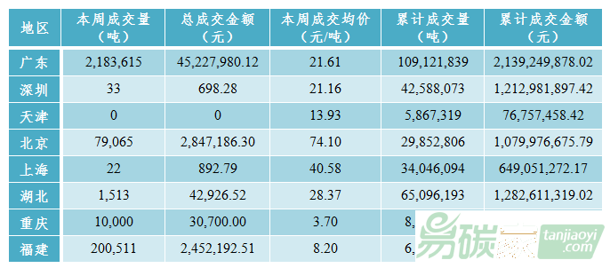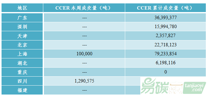 四川碳市場本周CCER成交129.06萬噸。天津碳市場本周未成交。