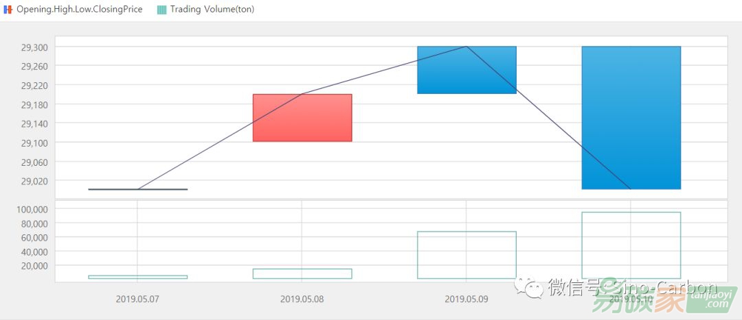 韓國碳市場2019年05月06日至2019年05月12日,韓國碳市場價(jià)格在29000-29300韓元/噸間波動(dòng)(約24.56-24.81美元/噸)。