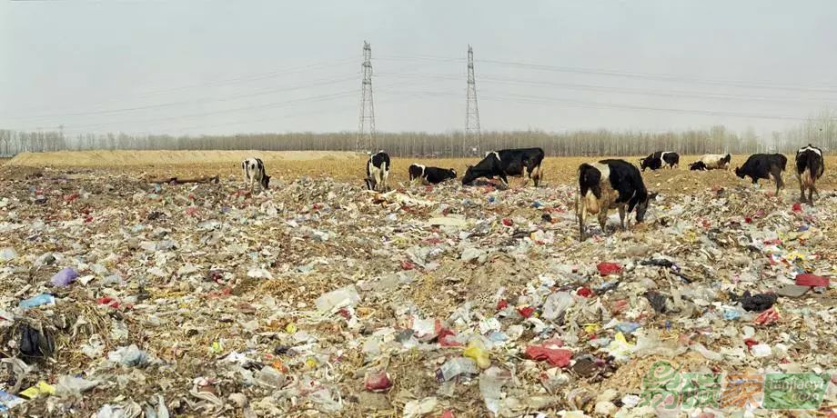 《垃圾圍城》導(dǎo)演王久良的攝影作品:牛群在垃圾堆里翻找“食物”