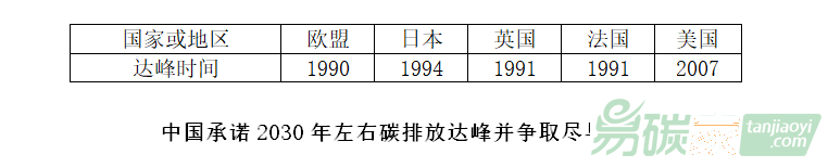 為避免全球溫升過高帶來的不可逆影響,全球溫室氣體排放需盡快達(dá)到峰值,隨后進(jìn)入下降階段。目前,日本、英國(guó)、法國(guó)、美國(guó)等發(fā)達(dá)國(guó)家的溫室氣體排放已經(jīng)達(dá)峰(見下表),而全球溫室氣體排放總量以及中國(guó)等大部分國(guó)家的溫室氣體排放仍然處于增長(zhǎng)階段。根據(jù)IPCC第五次評(píng)估報(bào)告,全球溫室氣體排放要在2020-2030年達(dá)到峰值,這是實(shí)現(xiàn)2攝氏度溫控目標(biāo)的重要條件。