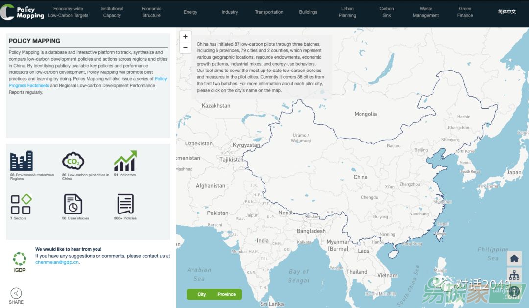 由綠色創(chuàng)新發(fā)展中心(iGDP)開發(fā)的低碳政策庫(kù)是跟蹤、整合國(guó)家以及地區(qū)綠色低碳政策與行動(dòng)的信息平臺(tái),其特點(diǎn)是以省市政策為主,對(duì)地區(qū)宏觀層面以及多行業(yè)、多部門的政策進(jìn)行收集和整理,能夠一站式提供企業(yè)所在城市的綠色低碳政策。目前該數(shù)據(jù)庫(kù)已經(jīng)整理并呈現(xiàn)了36個(gè)低碳試點(diǎn)地區(qū)以及6個(gè)試點(diǎn)省的綠色低碳政策,涵蓋經(jīng)濟(jì)結(jié)構(gòu)調(diào)整、能源、產(chǎn)業(yè)、交通、建筑、城市規(guī)劃、固體廢棄物管理以及綠色金融等11個(gè)維度的政策信息。我們正在對(duì)低碳政策庫(kù)所覆蓋的地區(qū)、政策類型以及行業(yè)進(jìn)行擴(kuò)充,希望能為金融機(jī)構(gòu)的環(huán)境氣候風(fēng)險(xiǎn)量化分析提供更多支持。